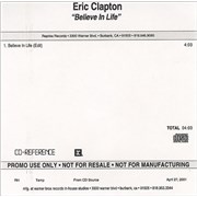Believe In Life US / CD-R acetate / Promo CDR ACETATE In Stock £21.99, US$ 29.25