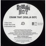 SOULJA BOY Crank That [Soulja Boy] (2007 US 3-track promo 12" vinyl DJ single. Includes the clean version, the 'Super' clean version and the instrumental. Housed in a generic black die-cut sleeve)