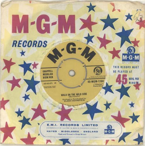 ELMER BERNSTEIN Walk On The Wild Side (1962 UK 7" vinyl single with intact four prong centre, also including Walk On The Wild Side Jazz, MGM company die cut paper sleeve 45-MGM-1164). |